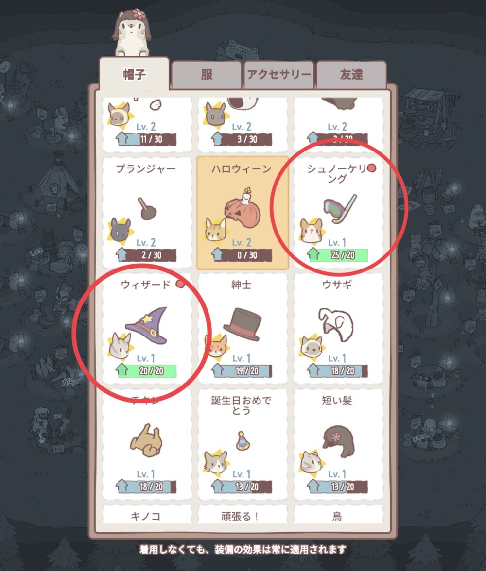帽子や服などのコスチュームを宝箱から獲得したあと、ちゃんと作っていますでしょうか‥。