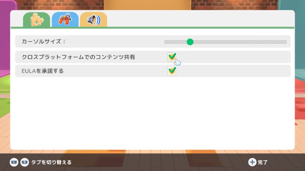 「+ボタン」で表示された設定を開き、クロスプラットフォームでのコンテンツ共有にチェックを入れます。