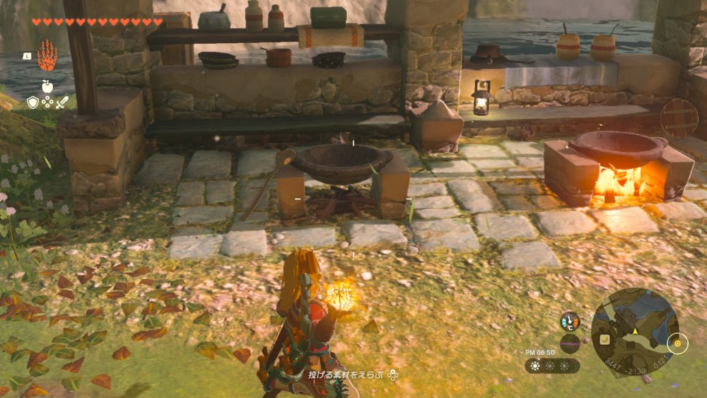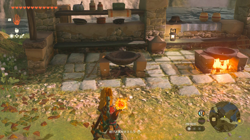 火炎の実や赤チュチュゼリーを持っているなら、料理鍋に投げつけるだけで火が付きます。