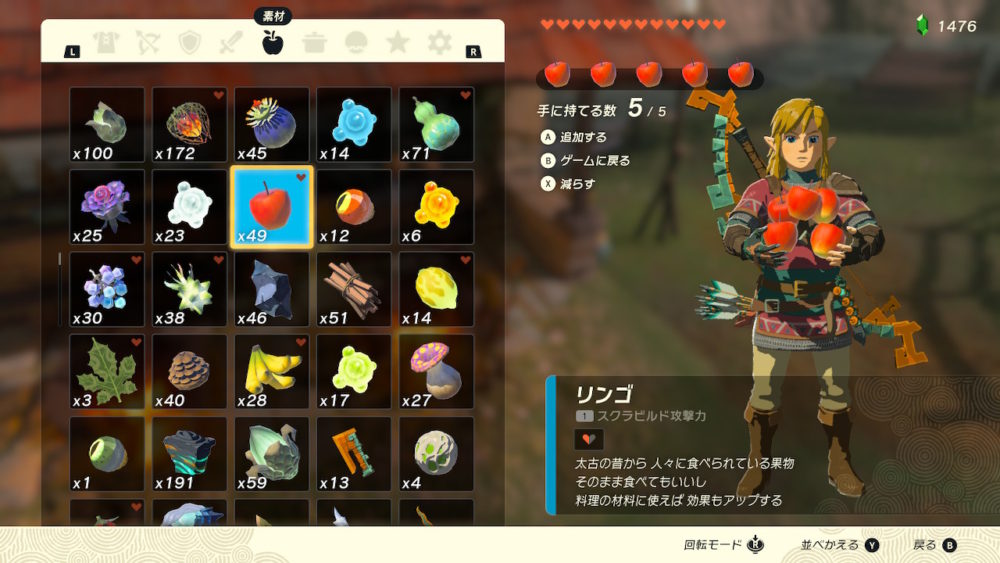 再度作りたい料理があれば「Aボタン」で必要な材料を自動的に持つことが出来ます。