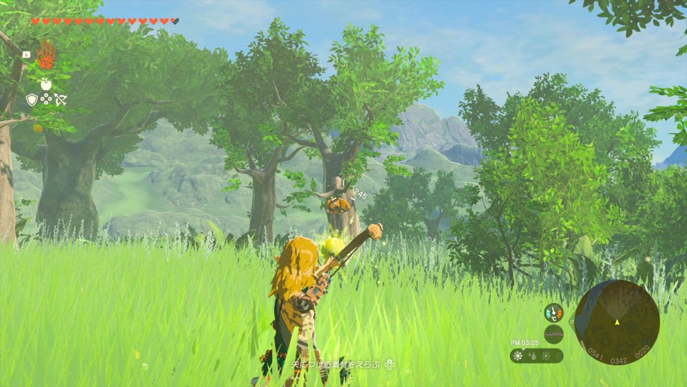 ハイラル平原でも大量に入手できる「火炎の実」を使って襲ってくるハチを撃退します!