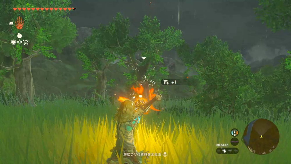 - ハチが襲ってくるので、矢に「火炎の実」を付けてハチの集団を狙って放つ