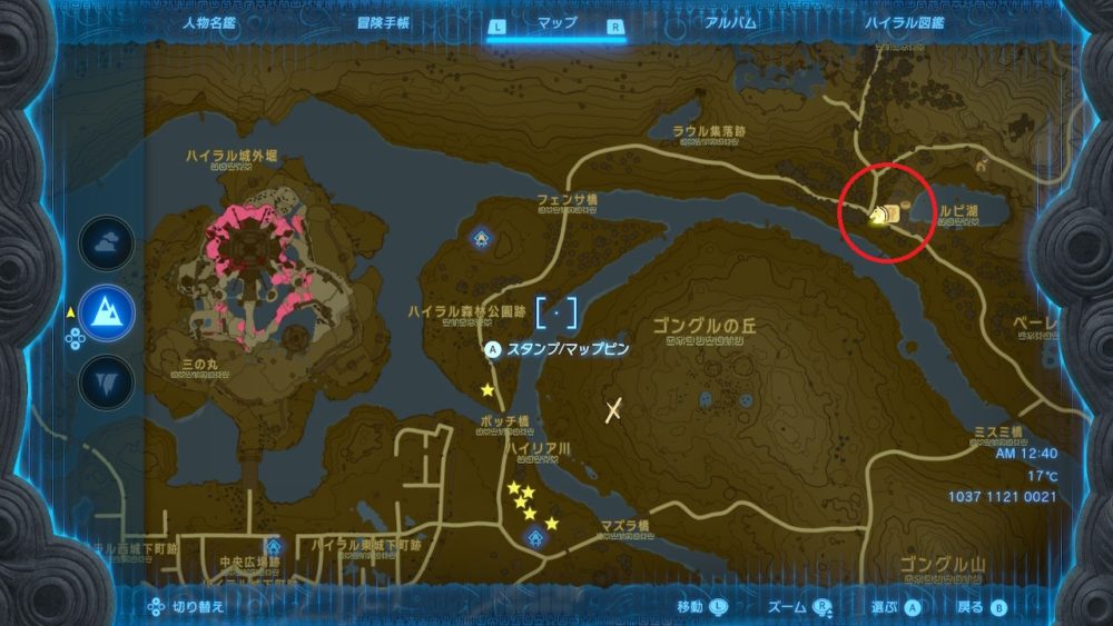 森の馬宿の横にあるルピ湖の奥に、気球のようなものが見えるので(画像はいなくなった後に撮影しました)そこへ行って、立っているキャラクターに話しかけてください。