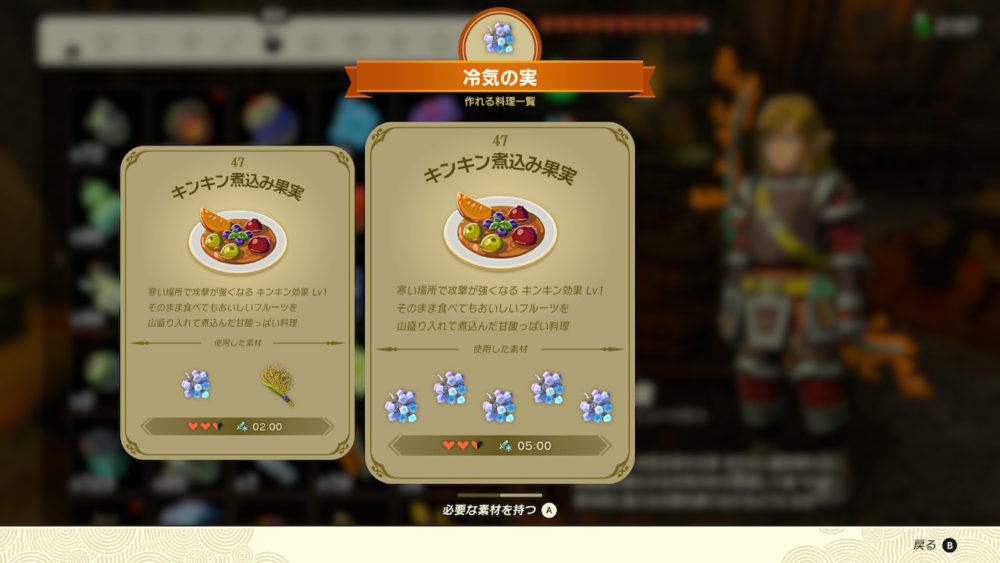 冷気の実を使って料理することで、寒冷時に強力な攻撃を繰り出せるようになります。