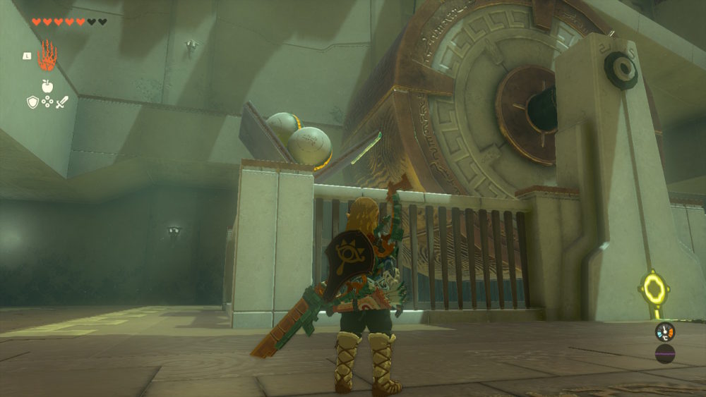 もし、宝箱がまだ見えない状態の時は、一度風車の装置の回転を止めてもう一度コの字型を作るか、ウルトラハンドで玉をどかしてみてください。